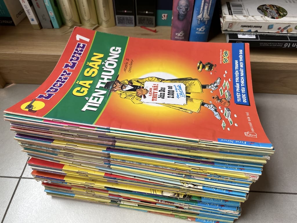 Lucky Luke 60 tập phát hành từ 01-2011 đến 06-2012, là bộ truyện tranh đầu tiên của bạn Gấu, từ mù chữ đến biết đọc 😃