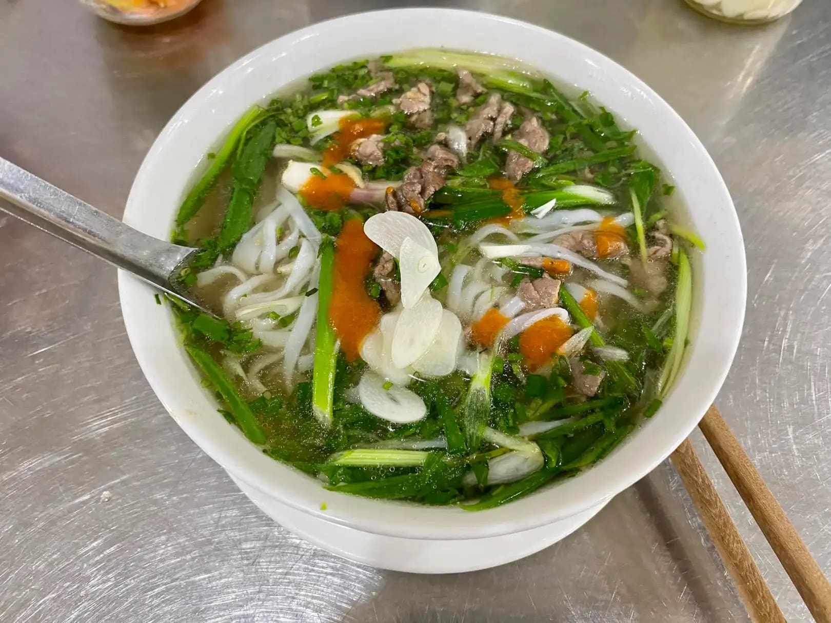 Vẫn 50K một bát, giá không đổi từ khi quán khai trương, còn lượng có đổi hay không thì hơi khó biết (nếu có cũng ít, vì tôi cũng khó nhận ra 😃). Cùng thời gian này cũng phở tái lăn gần nhà tôi, dĩ nhiên không bằng phở Thìn, đã từ 50K lên 65K. Tất nhiên giá SG có khác giá Vũng Tàu.
