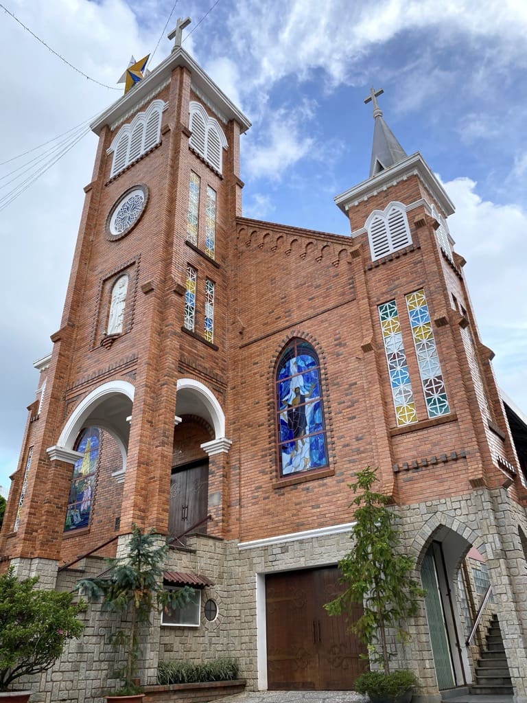 Nhà thờ giáo xứ Chi Lăng là một nhà thờ mới xây dựng lại, nhỏ nhắn, chỉ hơi khác là tháp chuông lại ở phía sau chứ không ở đầu phía cổng chính như thường thấy. Ghé vào đây cũng không gặp ai, cửa mở nên cả nhà vào trong nhà thờ ngồi ngắm nghía, nói chuyện linh tinh về Ki Tô giáo, về buổi lễ hôm trước ở nhà thờ Con gà mà bạn Gấu phát hiện ra là một trong hai cánh cửa trên bục làm lễ là ngăn chứa hai chiếc chén làm lễ. Chỉ khác là chén thánh ban đầu chỉ là một chiếc ly gỗ bình thường (Holy grail), còn chén thánh bây giờ toàn mạ vàng sáng choé đâu toàn mấy triệu một chiếc.